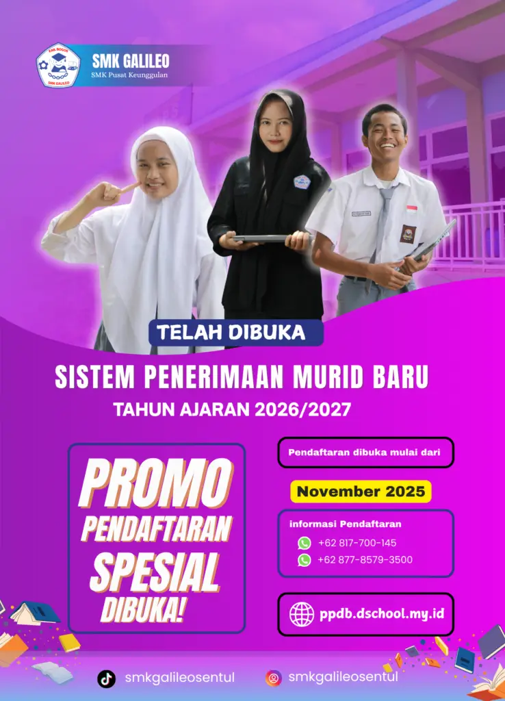 Mengapa SMK GALILEO? SMK GALILEO dikenal dengan pendekatan pendidikan yang inovatif dan berorientasi pada praktik. Dengan kurikulum yang selalu diperbarui sesuai dengan perkembangan teknologi dan kebutuhan industri, siswa SMK GALILEO tidak hanya dibekali dengan teori, tetapi juga keterampilan praktis yang siap diterapkan di dunia kerja. “Kami berkomitmen untuk memberikan pendidikan vokasi terbaik bagi generasi muda. […]