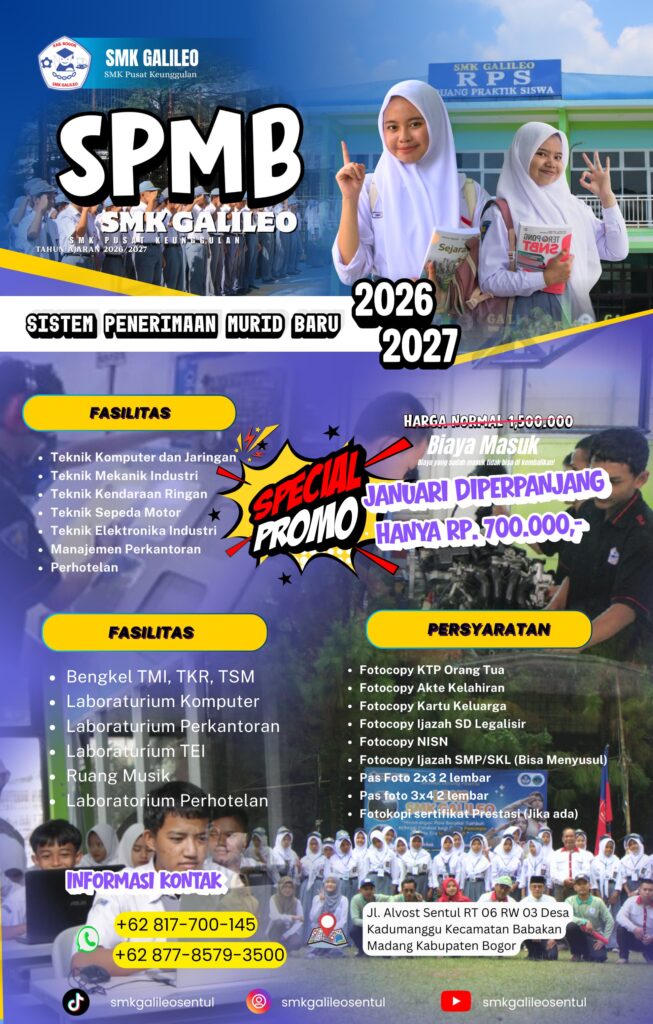 SMK GALILEO – SPMB 2026/2027: Promo Spesial Januari, Hanya Rp 700.000!”