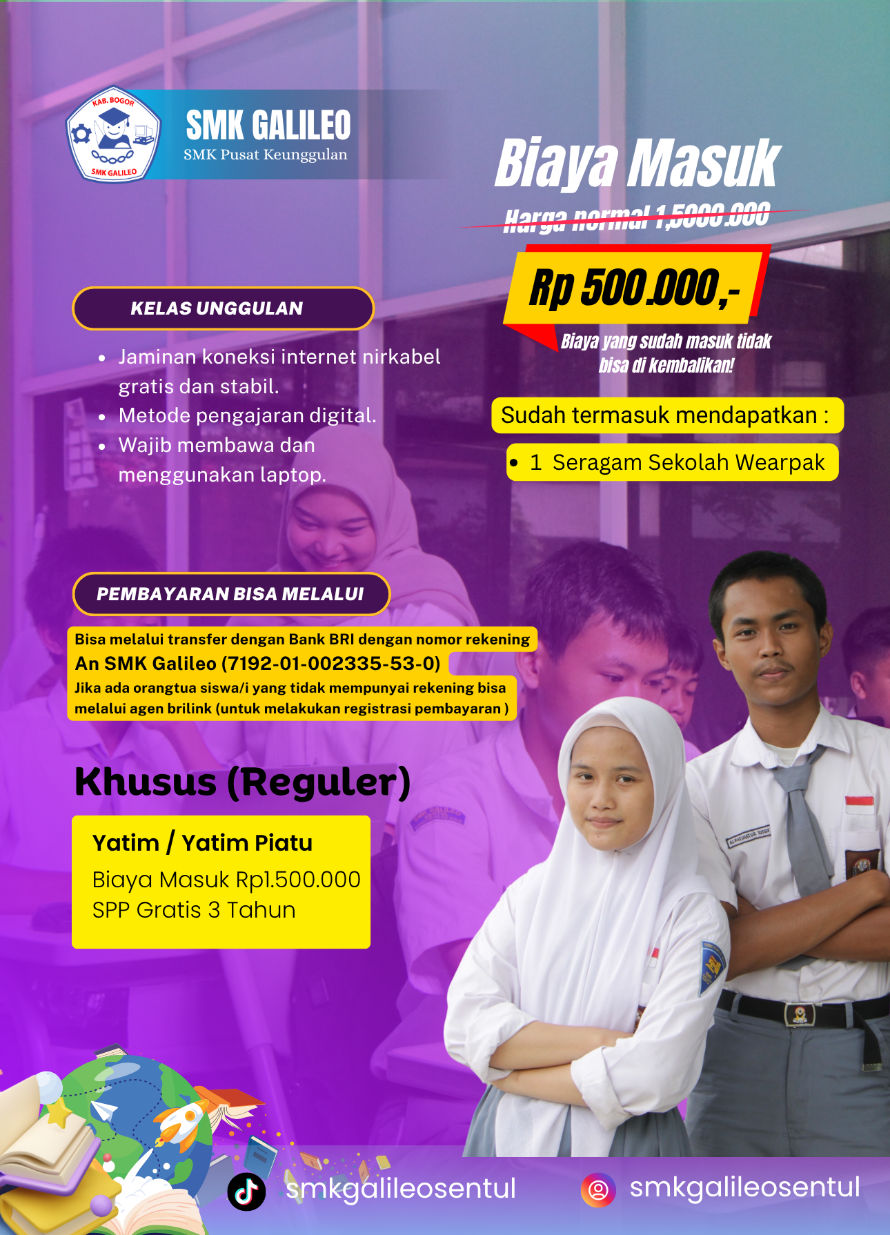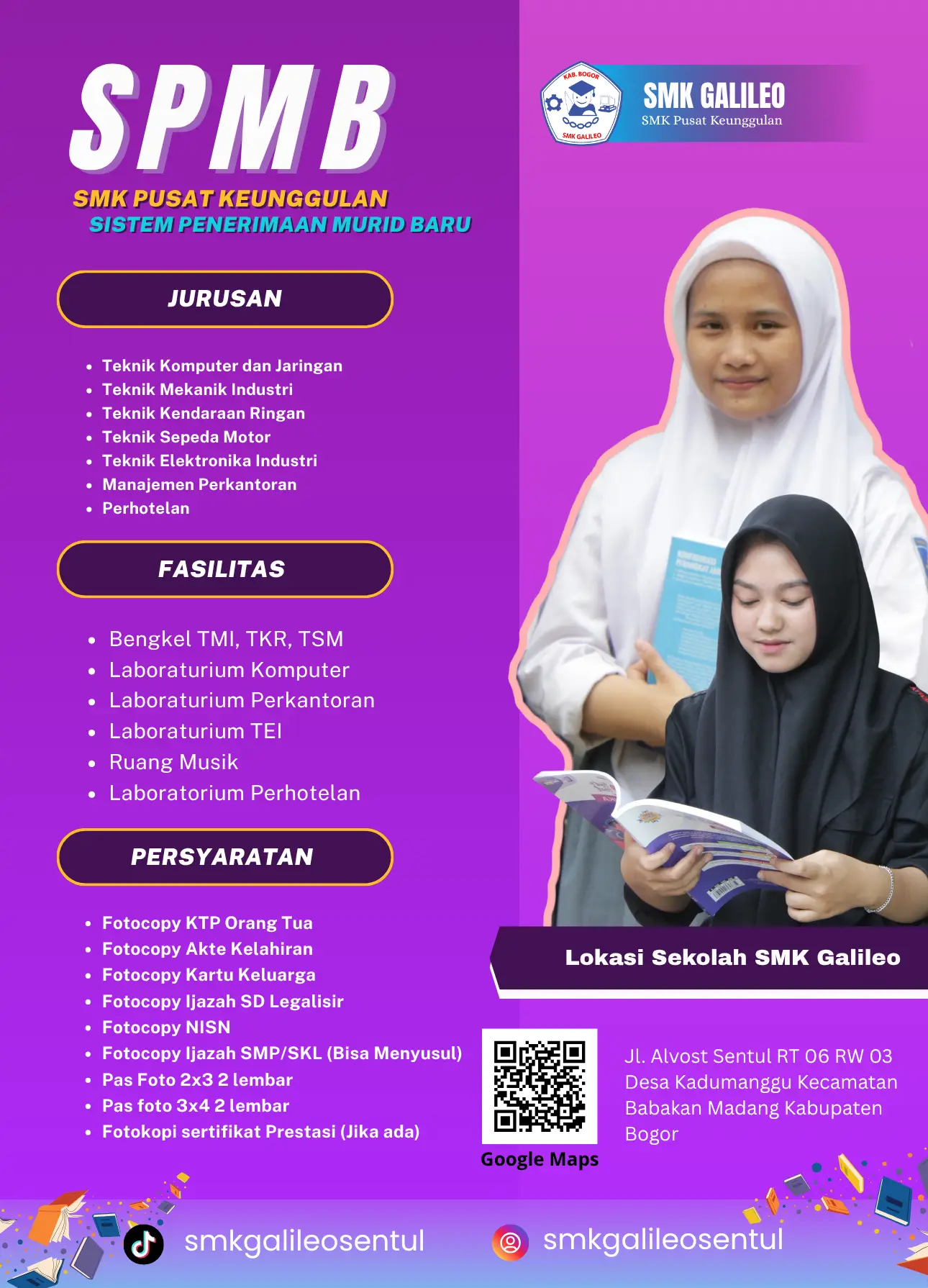 “Kami berkomitmen untuk memberikan pendidikan vokasi terbaik bagi generasi muda. PPDB tahun ini menawarkan berbagai program unggulan yang relevan dengan kebutuhan industri saat ini dan masa depan, Jangan lewatkan kesempatan emas ini untuk bergabung dengan SMK GALILEO dan meraih masa depan yang gemilang! Untuk informasi lebih lanjut, kunjungi website resmi SMK GALILEO atau hubungi panitia PPDB.